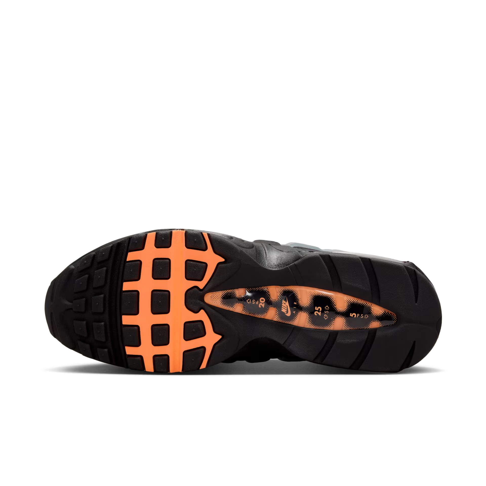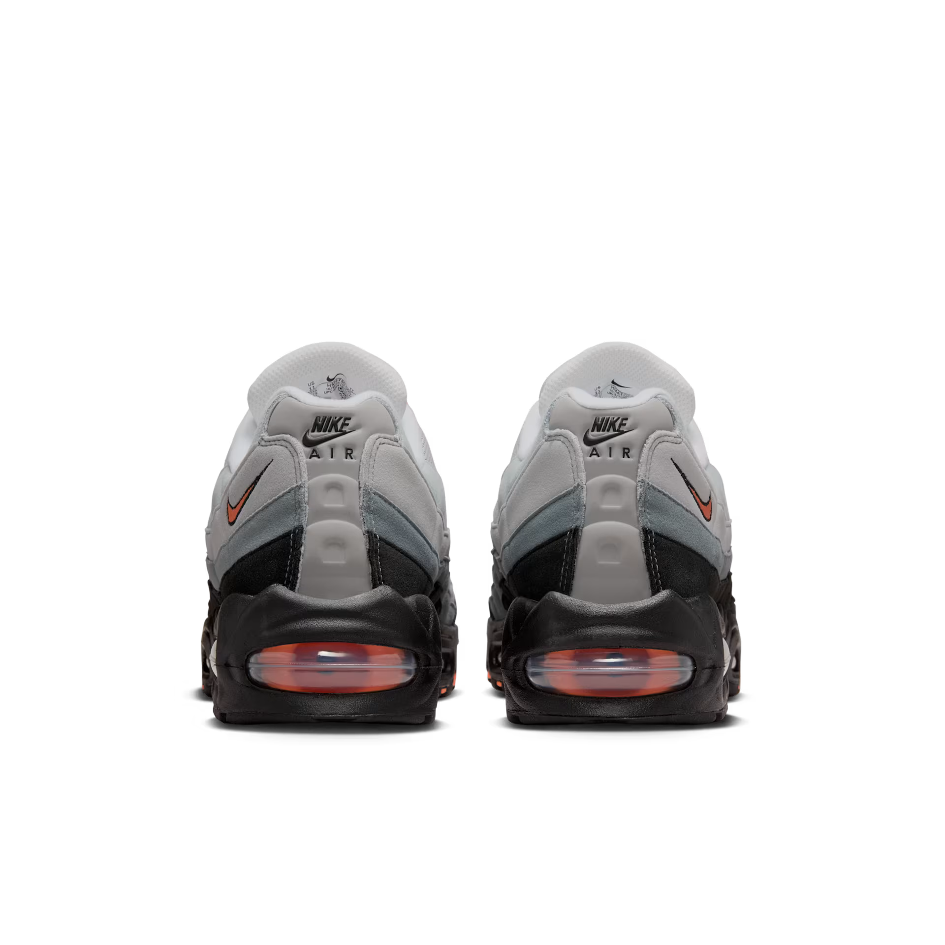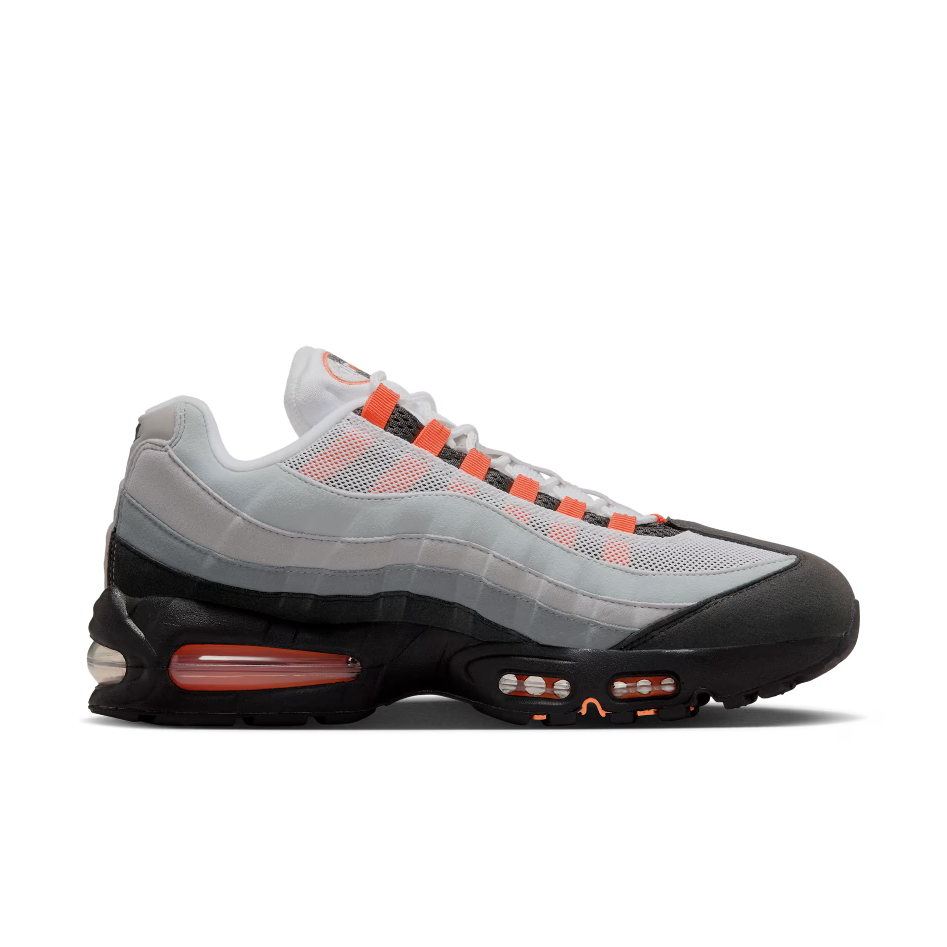 Big. Bold. Bounce. To celebrate 30 years of the iconic silhouette, the Air Max family is welcoming back the 'Big Bubble' edition of the 95. With a design that stays true to the original, this iteration stacks the upper with rippling layers of synthetic leather and airy mesh that gradually fade from black to white. Pops of Bright Mandarin accentuate the lace loops, branding and Air units. Elevate your style with a little more Air and enjoy the future of your Air Max journey.